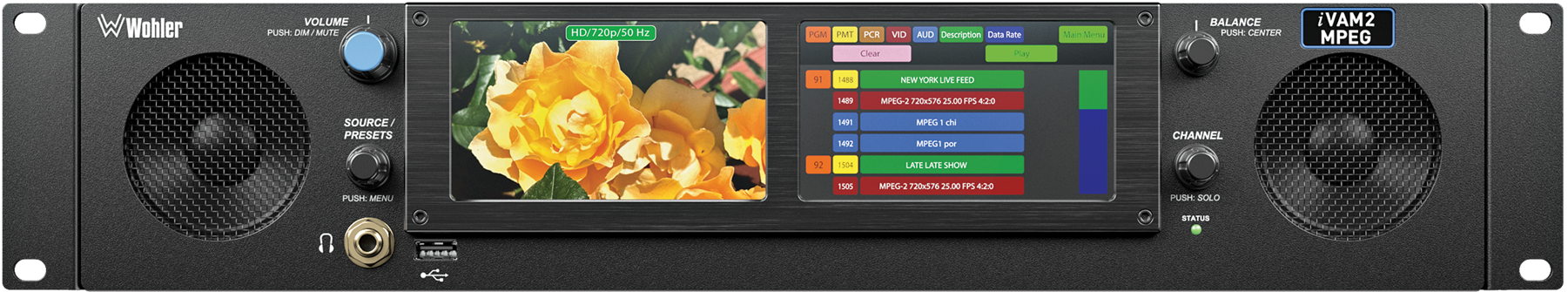 August 2025 – Wohler is pleased to announce the launch of our latest innovation, the iVAM2-MPEG SRT monitor. This 2RU unit can decode MPEG SRT MPEG2, H.264 or H.265 HEVC transport streams, at bitrates up to 35Mbps. The unit parses out MPEG transport streams and presents operators with PID (packet identifiers) tables, allowing for independent selection of audio and video PID’s for decoding and monitoring